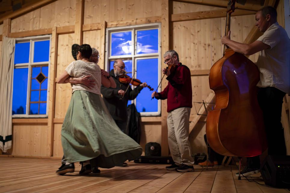Musik av lokala spelmän, blandat med digital foxtrot- och bugglåtar.